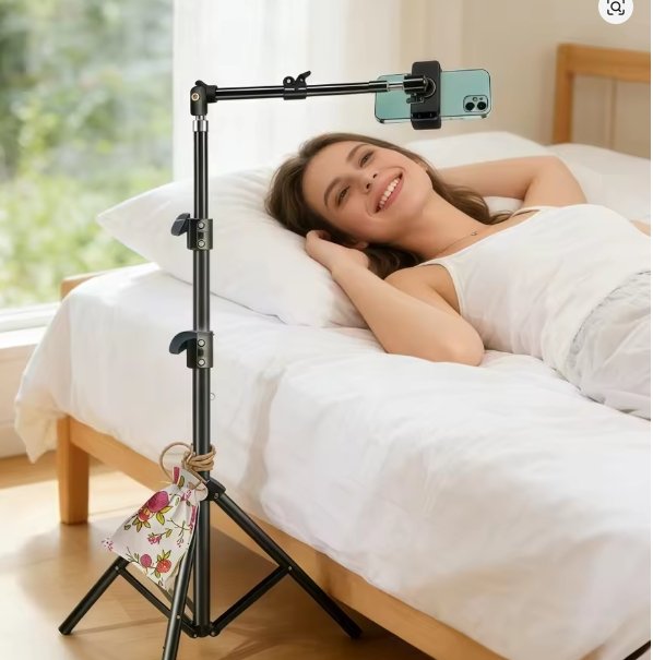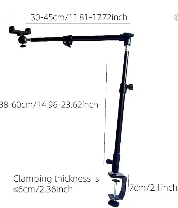 Premium Adjustable Mobile Stand designed for comfortable viewing and hands-free use. It features a strong clamp that easily attaches to your desk or table. The flexible arm and 360° rotation allow you to adjust the perfect angle for your needs. Ideal for watching videos, online classes, gaming, and live streaming.