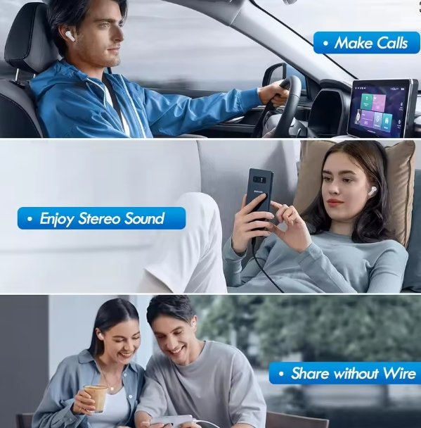 High-quality Wireless Bluetooth Earbuds with AirPods-style design. Enjoy clear sound, deep bass, and stable connection. These earbuds come with a charging case for extended battery life. Easy to connect with all smartphones and perfect for music, calls, and daily use.