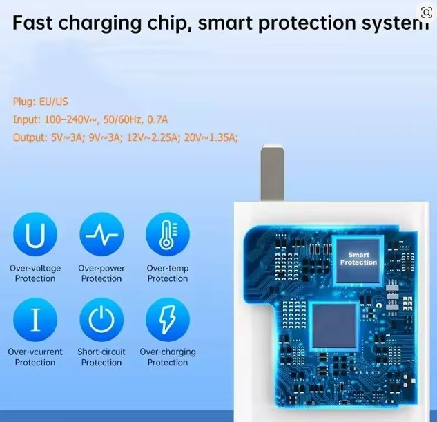 Charge your devices faster and smarter with this high-speed Fast Charging Adapter. Available in 20W and 33W power options, this adapter ensures quick and efficient charging for your smartphones, tablets, and other devices. Built with advanced safety features, it protects your device from overcharging, overheating, and short circuits. Its compact and lightweight design makes it perfect for home, office, and travel use.