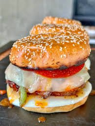 A delicious fusion of pizza and burger, loaded with juicy chicken patty, melted cheese, and flavorful pizza sauce. Topped with fresh veggies and served in a soft toasted bun for a unique and mouthwatering taste.