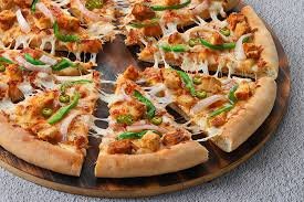 A generously topped pizza loaded with tender chicken fajita strips marinated in zesty spices, served on a perfectly baked large crust. Covered with melted mozzarella cheese, fresh onions, capsicum, and a blend of herbs, delivering a rich, mildly spicy and savory flavor. Perfect for sharing with family or friends.
