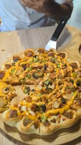 A perfect blend of traditional BBQ flavor and classic pizza! Medium-sized crust stuffed with juicy, seasoned seekh kabab, topped with tender chicken, fresh onions, capsicum, olives, and loaded with melted mozzarella cheese. A satisfying choice for sharing, offering rich kabab flavor in every cheesy bite