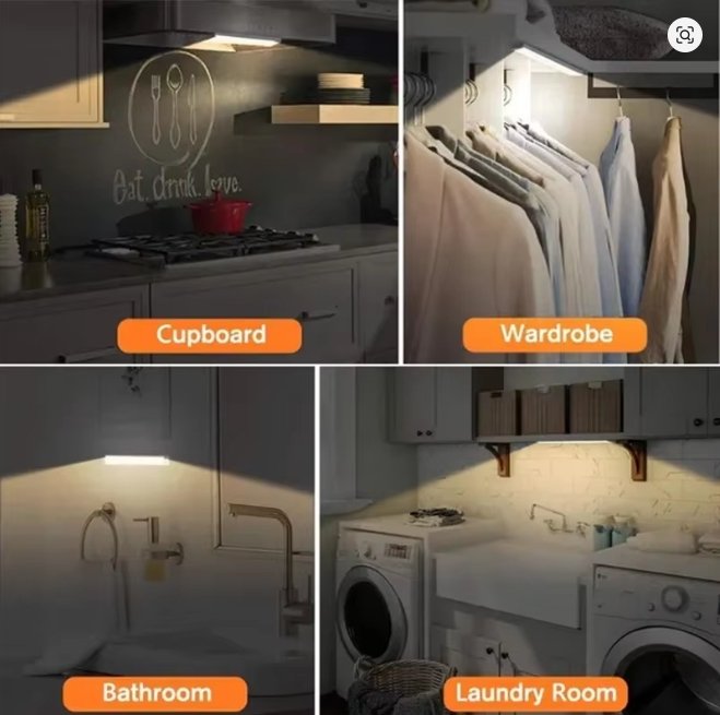 LED Motion Sensor Light is a smart and energy-saving lighting solution for your home. It automatically turns ON when motion is detected and turns OFF after a few seconds, making it perfect for night use. No wiring needed – easy to install anywhere like stairs, bedroom, kitchen, wardrobe, or bathroom.