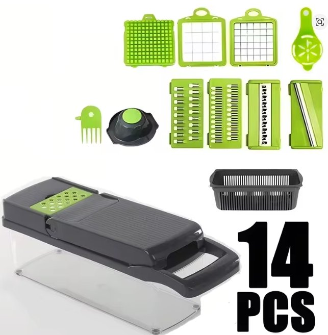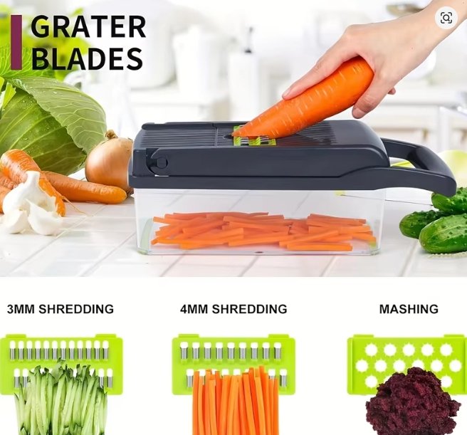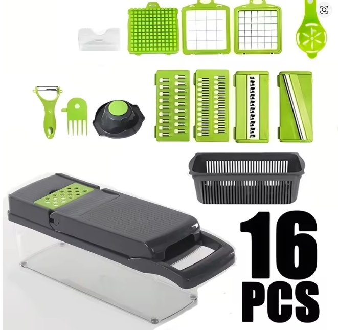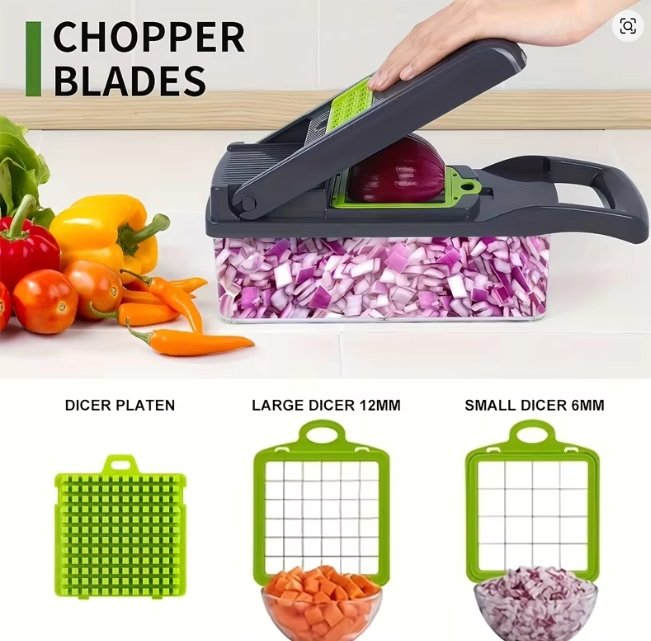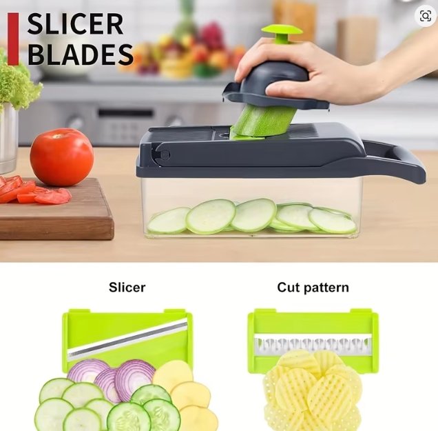 Upgrade your kitchen experience with the 12-in-1 Vegetable Cutter – the ultimate tool for fast and easy food preparation. This multifunctional cutter allows you to slice, dice, chop, and grate vegetables in seconds. It comes with multiple interchangeable blades, making it perfect for cutting onions, potatoes, carrots, cucumbers, and more. The durable design ensures long-lasting performance, while the compact size makes it easy to store. Perfect for home kitchens, saving time and effort while cooking. Key Features: • 12 different cutting options • Sharp stainless steel blades • Easy to use and clean • Time-saving kitchen tool • Durable and high-quality material